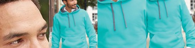 - Contrast jersey hood lining, neck tape and drawcord