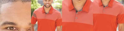 - Heather blocking on upper chest, back and shoulders