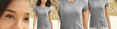 - 4.4-ounce, 75/13/12 poly/cotton/rayon jersey with PosiCharge technology
