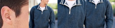 - 1x1 ribbed yarn-dyed striped inside collar, cuffs and waist