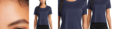 With an on-trend cropped fit and all-over open-mesh fabric, this moisture-wicking draft crop tee has PosiCharge technology to lock in color.