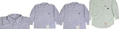 7 oz., 100% flame resistant twill; Meets the requirements of ASTM F1506, NFPA 70E, NFPA2112, and OSHA 1910.269; Button-down collar; Button front; Pockets with flaps and button closures; Pencil slot on left pocket; Triple needle stitched main seams; Adjustable button cuffs;