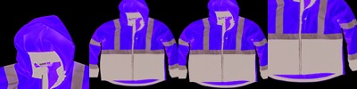 - Self fabric stripes on hood