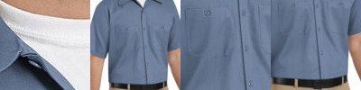 3.5 oz./yd /115 gsm, 100% polyester ripstop; Polyester mesh lining in upper back; Moisture-wicking, antimicrobial and UV protection performance; Structured collar with integrated collar stays; Full-button front; Back venting for breathability; Chest pocket with pen slots and pocket flaps; Easy care;