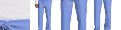 - Flat front full drawstring and half-back elastic waistband