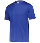 4.1 ounce 100% polyester interlock * Dri-Power(r) Moisture Wicking Technology * Heat sealed label * "R RUSSELL" on left sleeve end * Self-fabric crew neck collar * Garment protects against the sun with 30+ UPF * Set-in sleeves