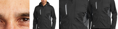 - 100% poly stretch shell bonded to textured grid fleece with a laminated film insert for wind and water resistance